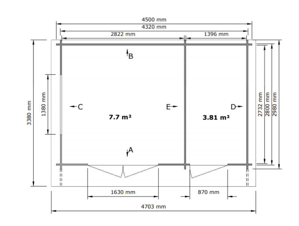 ·  Išoriniai matmenys: 450 x 300 cm (plotis x gylis)