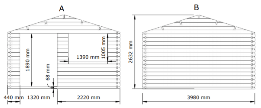 Į komplektaciją neįeina stogo danga, grindys, medienos dažai ir tvirtinimo elementai (medsraigčiai).