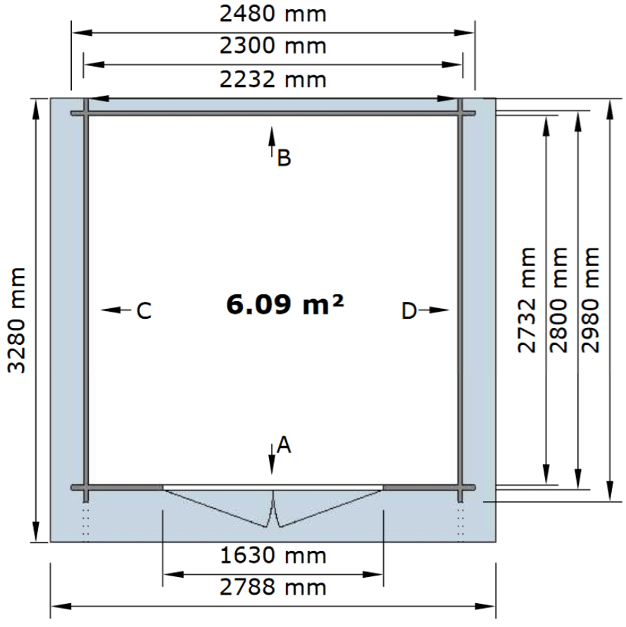 ·  Išoriniai matmenys: 250 x 300 cm (plotis x gylis)
